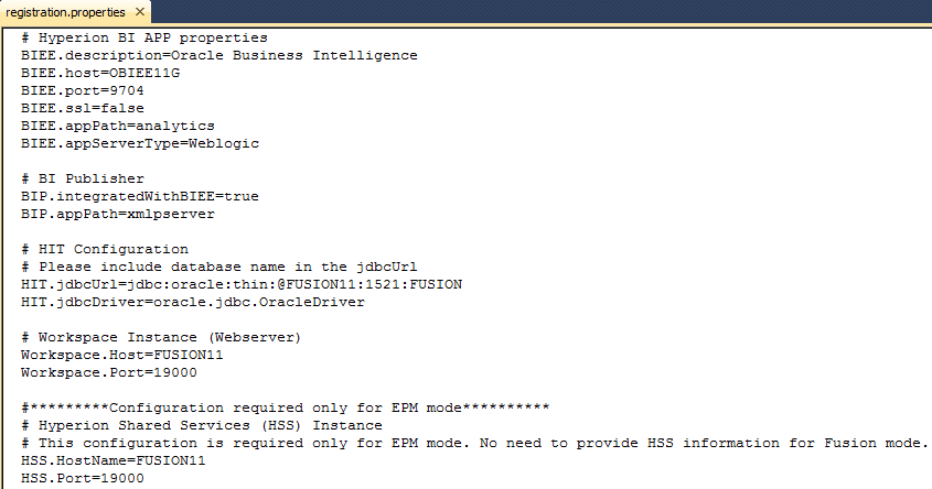 I don’t feel the properties really need any explanation except HIT (Hyperion Installation Technology) is the JDBC information for the EPM registry which can be found in reg.properties.